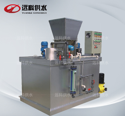 主要包括藥粉儲存料斗、藥粉定量輸送器、混合器、溶藥箱、攪拌器、液位計、控制箱等部分;