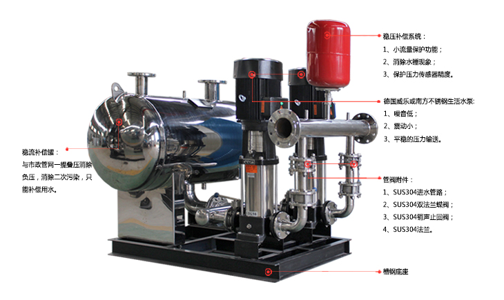 - 6、占地少安裝方便:整套設(shè)備只有一組供水控制柜、無(wú)負(fù)壓穩(wěn)流罐和水泵機(jī)組三部分,安裝非常簡(jiǎn)單方便。